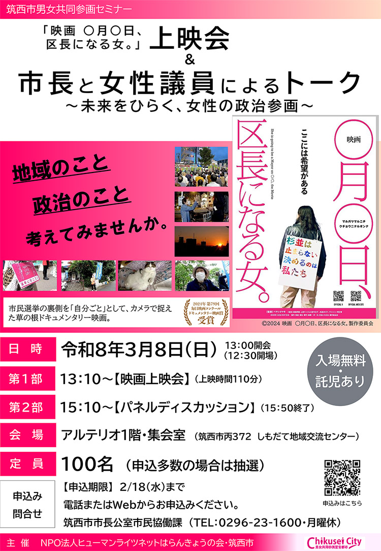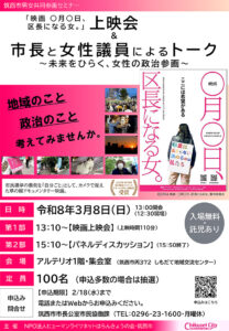 「映画 ◯月◯日、区長になる女。」上映会&市長と女性議員によるトーク~未来をひらく、女性の政治参画~ 開催のお知らせ